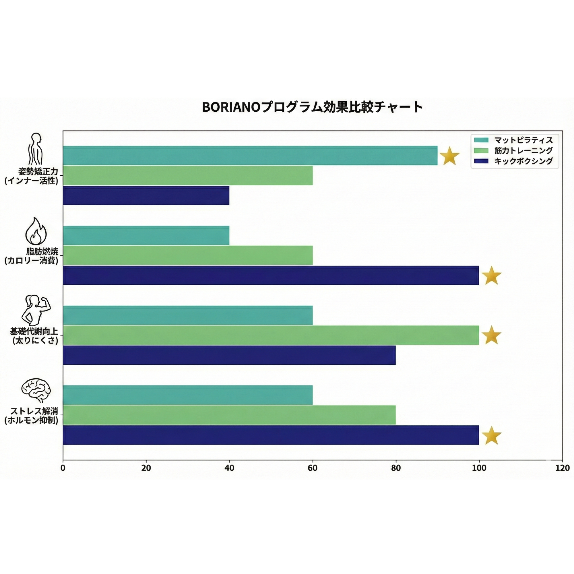 「頑張っても変わらない」のは、巡りが滞っているサイン。 身体の隅々まで酸素が行き渡らなければ、どれだけ努力を重ねても脂肪は効率よく燃焼されません。ピラティス、筋トレ、キックボクシングを組み合わせ、内側の滞りを整える。エネルギーをしっかり消費できる身体へと立て直すことが、変化を定着させる近道となります。